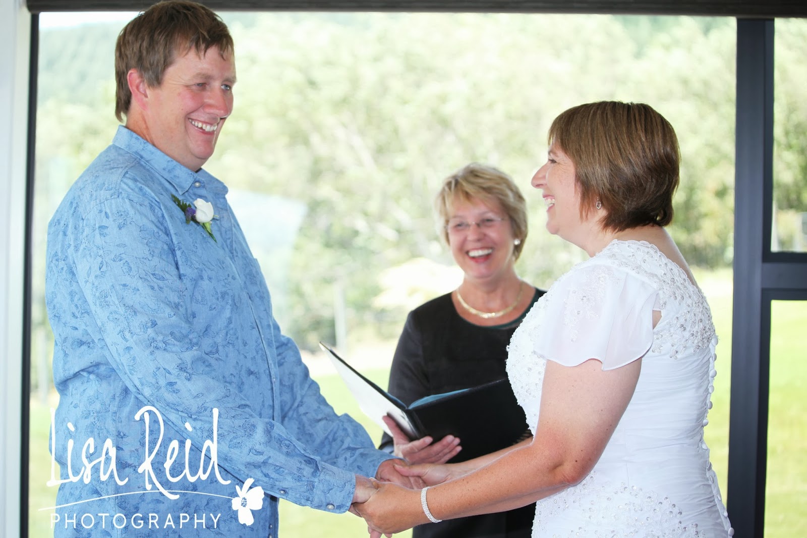 Marianna and Roger’s wedding day would have to one of the most relaxed weddings I’ve ever been too. They married in the lounge of their beautiful Saddle Hill home over looking the Taieri Plains. It was supposed to be an outdoor wedding but the weather didn’t play the game and although the sun was shining the wind was blowing – boy was it blowing!! Still, with a living area plenty big enough to accommodate all of their guests nothing was a problem.